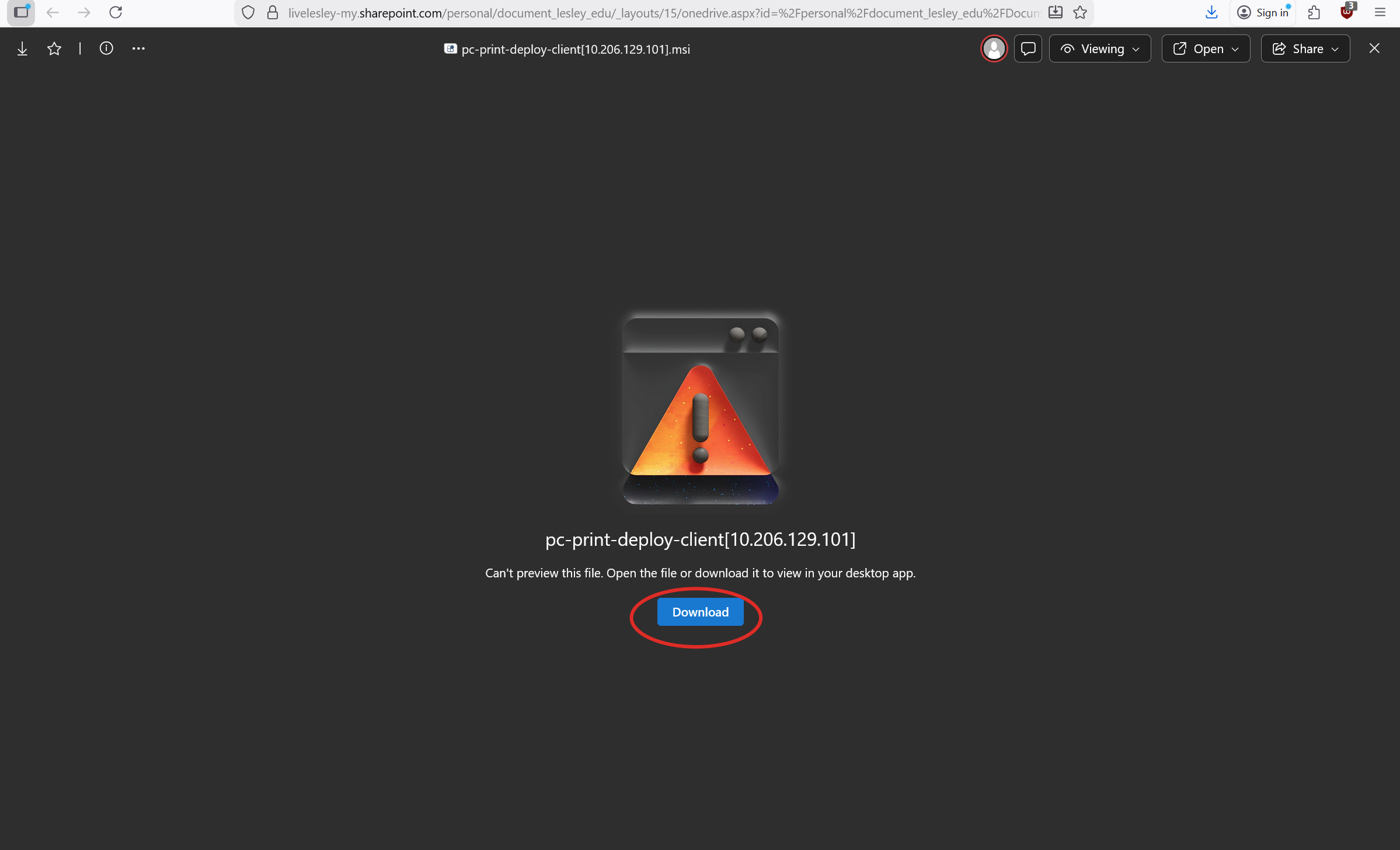 - Once the program “pc-print-deploy-client[10.206.129.101].msi” is downloaded, double click the program to run it.