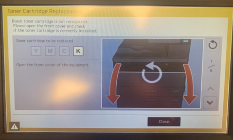 2. Located the toner that needs to be replace as shown on the screen.
